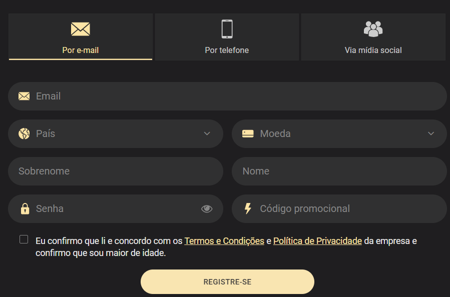 Para confirmar o registro, você deve concordar com o processamento de dados. Aqui o visitante indica que leu os termos e condições da empresa. Qualquer um dos métodos permitirá que você insira o código promocional atual em uma coluna separada. Os cupons de registro garantem acesso a bônus adicionais assim que você fizer login. Em geral, o procedimento de abertura de conta não leva muito tempo. Um e-mail com um link de ativação será enviado para o endereço de e-mail especificado. Ao seguir esta URL, o cliente vincula o endereço e assina a newsletter da empresa.